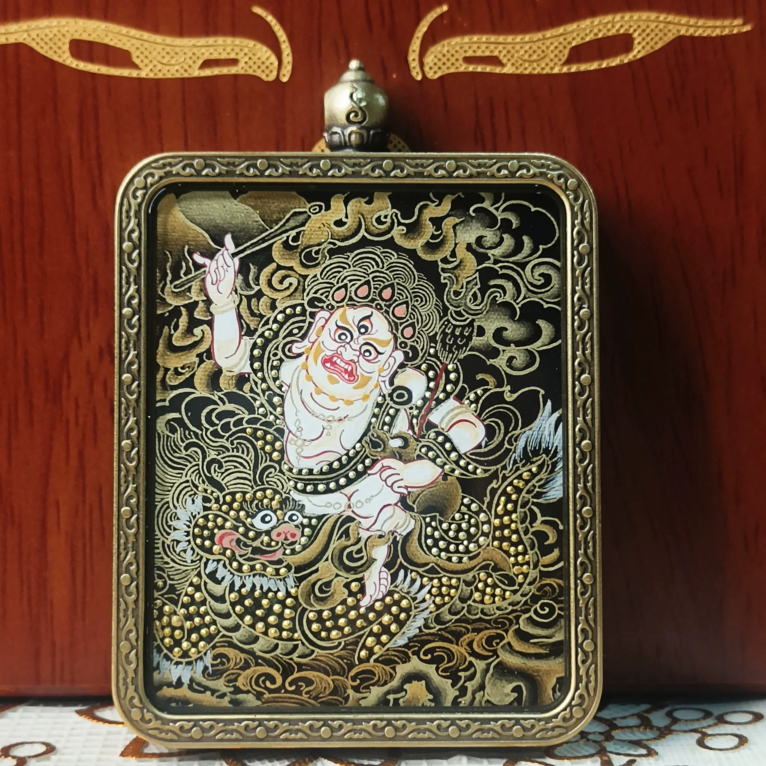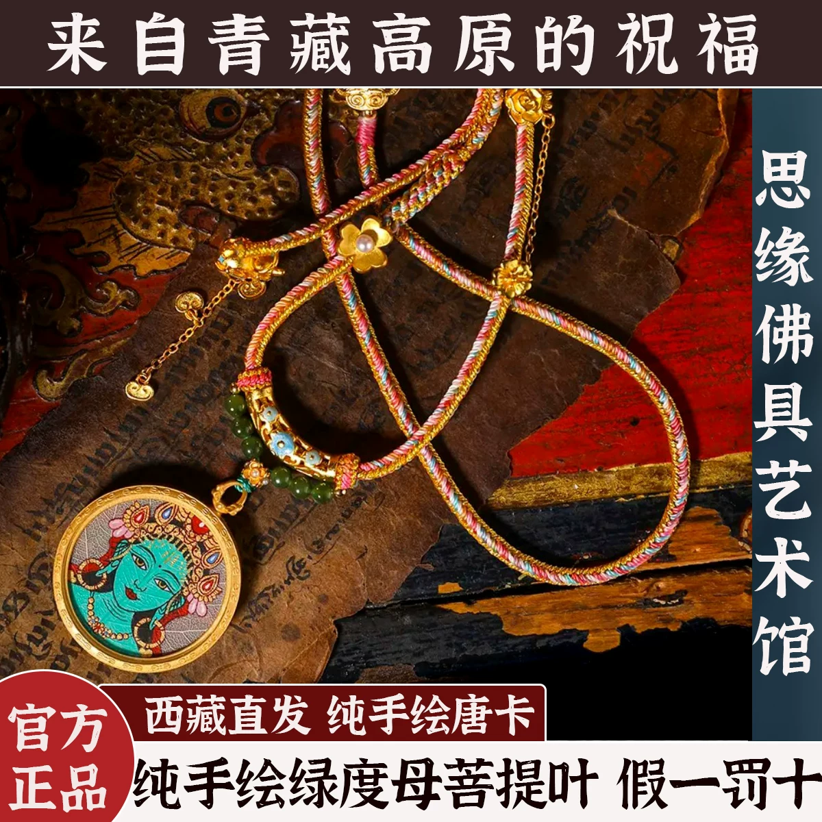 Tibetan Pure Hand-Painted Green Tara And Bodhi Leaves Tibetan Authentic Round Thangka Amulet Pendant Necklace